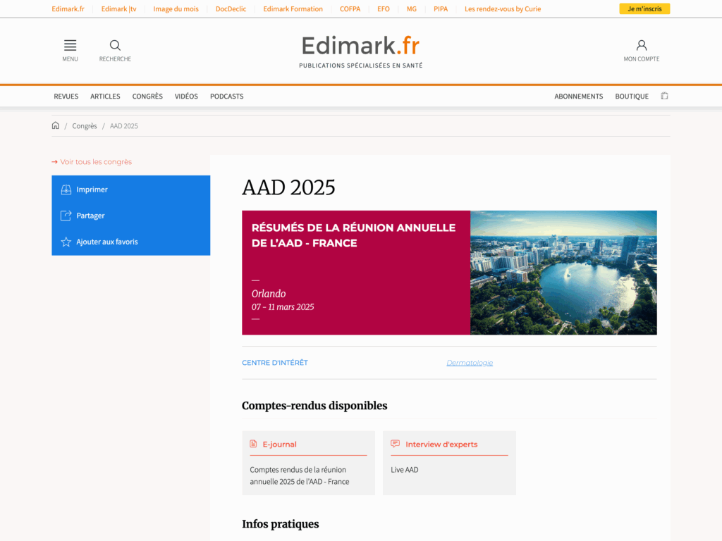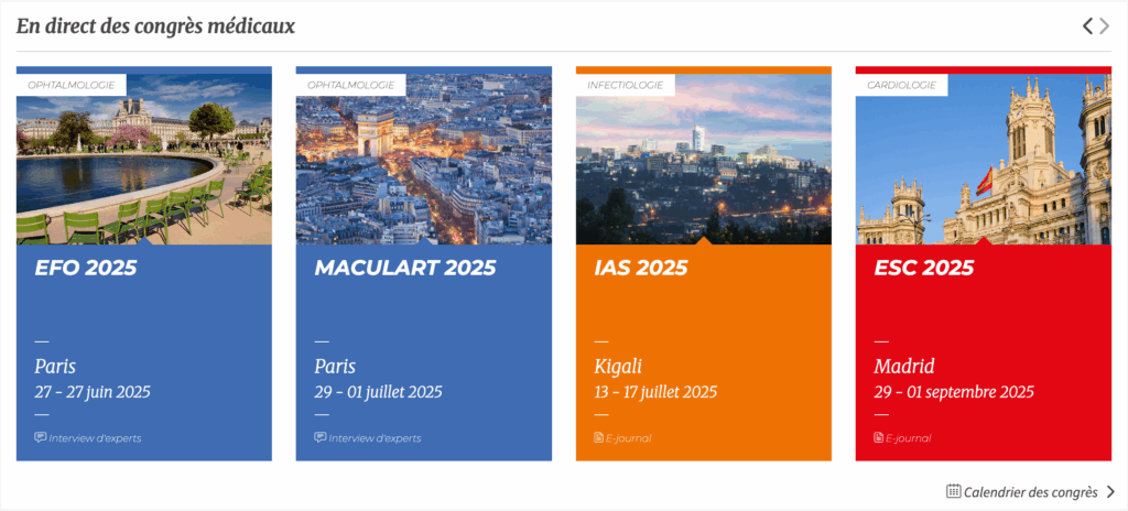 Edimark couvre de très nombreux congrès médicaux. Dans ce contexte, ils réalisent plusieurs contenus réservés aux professionnels de santé.